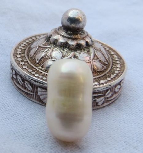Natural Pearl Basra The pearl is of 8.35 carat, displays transformation in colors when kept in natural sunlight. Displays onion like shell covering when observed with lens.