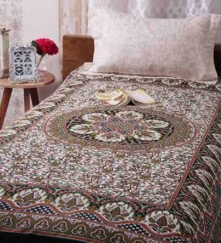 Cotton Single Bedsheet With Out Pillow Black Color Round Border Patti Handlook Print Bedsheet