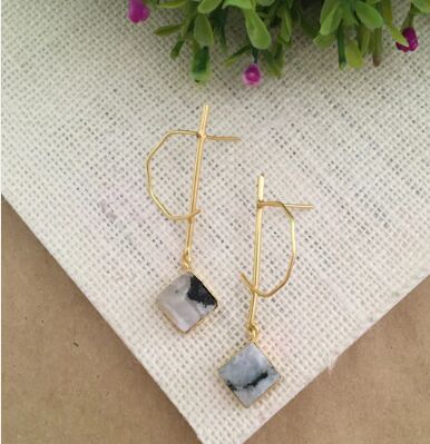 Discover the geometric elegance of our Rhombus Stone Drop Earrings. These earrings feature a sleek rhombus-shaped design crafted from high-quality metal, adorned with a captivating stone at its center. The stone's natural beauty and vibrant color draw the eye, while the geometric shape adds a modern twist to classic elegance. Lightweight and comfortable for extended wear, these earrings are perfect for both daytime chic and evening glamour. Elevate your look with the sophisticated charm of our Rhombus Stone Drop Earrings, a must-have addition to any jewelry collection.