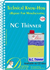 Technical know-how report for nc thinners (tnhr 125) the technical for making nc thinners (tnhr 125) at small scale is a self explanatory report in common man's language which throws light on almost all important factors and steps for manufacturing of above product. The report is an ereport which can be received instantly through online downloadable link or as an email attachment. You can ask us to provide a cd of the same report, which we can send as a shipmentcourierparcel to your address. The technical know-how report contains information on almost every topic as below (where ever necessary): 1. Introduction of product 2. Uses and application of the product 3. Formulation of the product 4. Step by step manufacturing guidance. 5. Necessary do's before, during and after manufacturing of the product. 6. Necessary do not's before, during and after manufacturing of the product. 7. Inspection and quality control of the manufactured product. 8. Details of machines required. 9. Names of raw materials required with photos. 10.physical and chemical characteristics of the product. 11.addresses of suppliers of raw materials. 12.addressees of suppliers of machinery. 13.disclaimer. 14.address of report supplying company for future correspondence. The main advantages of the report are as under: 1. This technical know-how ereport is easily and instantly receivable online. 2. This technical know-how ereport has been designed for common man. 3. This technical know-how ereport contains sufficient information on raw materials, formulations, processes and machinery. 4. This technical know-how ereport doe's not contain any unexplained raw material trade names (which otherwise favour particular companies only and they don't disclose actual name and nature of product).
