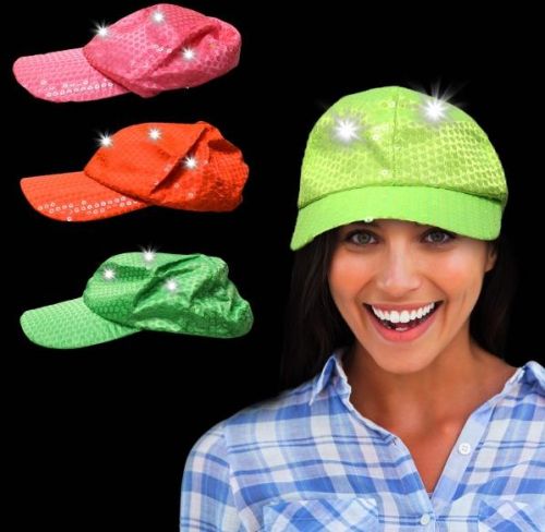 Cap off your marketing efforts with this neon sequin LED baseball cap! Available in several colors and made of polyester, this wow-worthy wearable is covered in sequins, allowing it to sparkle day or night. It features six bight white LED lights that can be turned on for a little extra fun in the dark. It is one-size-fits-most and will make for an illuminating addition to nearly any occasion! Sorry, but this hat is available unimprinted only.
