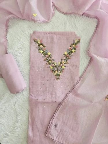 Net Kota fabric with beautiful hand embroidery work on neck line & net kota dupatta with lace work & embroidery & shantoon bottom.