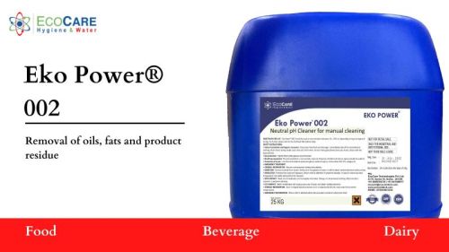 Eko Power® 002 is designed by industry experts as a concentrated solution of high–foaming detergents and emulsifiers. Eko Power® 002 is a balanced neutral formula that provides effective cleaning and hygiene, especially against oils, fats, and residuals of the product produced. .The product is perfectly safe for manual and soak cleaning of all food preparation equipment and cooking utensils. Soft Metal friendly like Aluminium, copper, etc.. Suitable to use for cleaning floors, walls, and work surfaces. Eko Power® 002 is a neutral pH. Crafted to be skin-friendly and Eco friendly. The product can be used for soak tank cleaning. It’s high foaming and free rinsing.