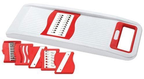 "All 100% ABS Sharp. Stainless Steel Blade Easy Grip and Smooth. 1 mm to 5 mm any size easy sliding. 6 Function in 1 single use. Ideal for Potato, Onion, Carrot, Beat, Tomato, Cucumber and Fruits."