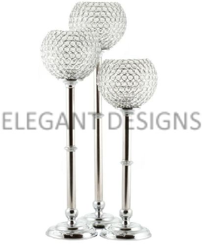 Crystal Globe Candle Holders, Wedding Table Crystal Candle Holders Center Table Crystal Candle Holders, Nickel Plated, Gold Plated and available in different designs & colors.