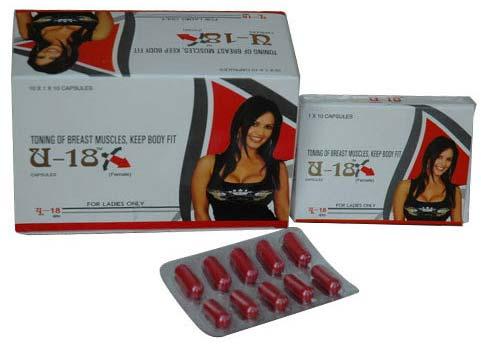 Female U-18 Herbal Capsules are used for toning of breast muscles. We manufacture, supply and export premium quality Female U-18 Herbal Capsules. Female U-18 Herbal Capsules are useful for enlargement of underdeveloped breasts. We are offering highly efficient Female U-18 Herbal Capsules, which are formulated using natural ingredients in accordance with the set standard. Â Uses Correct Underdeveloped Breast Gives Strength & Elasticity to Breast Muscles Keep Body & Skin fit & Healthy Firming & Toning of Breast & Body Muscles Packing : 1 X 10 Capsules