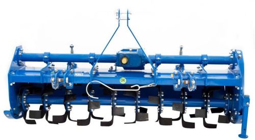 The machine is coupled to the tractor with the cultivator on the ground. The ground area should be flat.