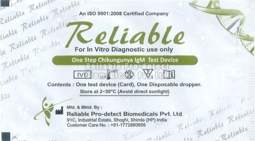 Contact SupplierReliable Pro-detect Biomedicals Pvt. Ltd. has established itself as a noted Manufacturer and Supplier of One Step Chikungunya IgM Test Device India. This test device setup deals with One Test Device (Card) and one Disposable Dropper. Our One Step Chikungunya IgM Test Device can be stored in a temperature range of 2~30°C. It is suggested to not to keep this One Step Chikungunya IgM Test Device under direct sunlight.