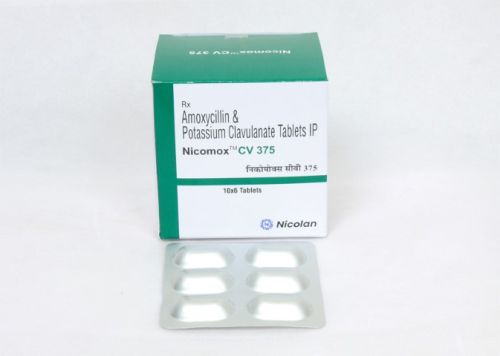 Contact SupplierNicomox CV 375 mg Tablet is a compound of Amoxicillin and Clavulanic Acid. This medicine is prescribed for the treatment of bacterial infections such as tonsillitis, respiratory tract infections, sinusitis, urinary tract infections, post-dental surgery, skin infection, cellulitis, bone infections, and oral cavity infections. This tablet requires time to give its best effect and heal your infection. Continue taking this medicine for the prescribed course as directed by your healthcare expert.