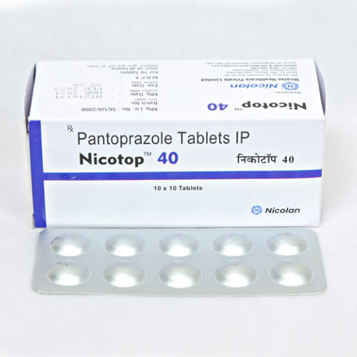 Nicotop 40 mg tablet includes Pantoprazole liable for the treatment of gastroesophageal reflux disease (Acid reflux) and peptic ulcer disease. The medication functions by reducing the symptoms of acidities such as heartburn, stomachache, indigestion, and inflammation. The medicine also helps to neutralize the acid in the abdomen and supports to clear passage of gas to decrease stomachache. The medicine is furthermore prescribed to control stomach ulcers and acidity that may be diagnosed with the effective usage of a pain-reliever.