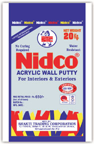 Nidco Acrylic wall Putty is a white cement based putty which is manufactured by using some of the products which are being imported from other countries. Before packing, the rawmaterial and manufactured good is tested at every level.