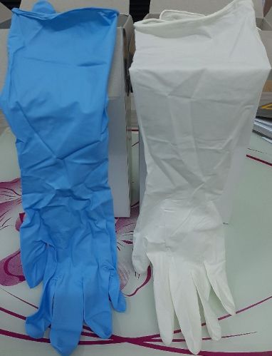 NITRILE GLOVES FROM THE SIZES OF 240MM TO 400MM IN WHITE AND BLUE COLOURS