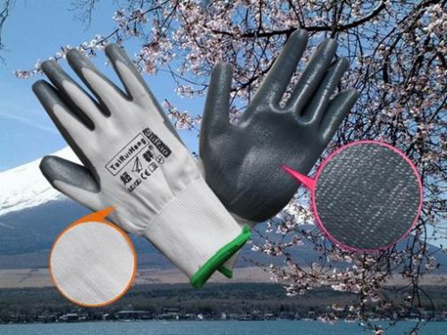 We are offering nitrile gloves. 1.13gauge nylon nitrile foam glove 2.latex palm coating 3.crinkle finish, size 8-11 4.oem/odm polyester latex wrinkle glove.