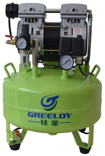 We are offering shanghai greeloy portable silent oil free dental air compressor model no.: ga-61 brand name: greeloy made in shanghai, china 1)piston type 2)oil free compressor 3)super silent, 5-10db lower than normal compressor 4)warranty is 2 years after delivery 5) designed for dental, medical, clear air supply specification: power: 600w volt. Hz: 110~240v 50~60hz speed: 14001750 r. P. M air flow: 118lmin at 0bar noise level: 52db max pressure: 8bar restart pressure: 5bar tank capacity: 24l weight: 2432kg product size: 410*410*550mm