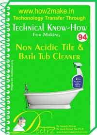 Technical know-How report for Non Acidic Tile & Bath Tub Cleaner (TNHR 94) The Technical Know-How eReport for making Non Acidic Tile & Bath Tub Cleaner (TNHR 94) at small scale is a self explanatory report in common man's language which throws light on almost all important factors and steps for manufacturing of above product. The report is an eReport which can be received instantly through online downloadable link OR as an email attachment. You can ask us to provide a CD of the same report, which we can send as a shipmentcourierparcel to your address. The Technical Know-How Report contains information on almost every topic as below (where ever necessary): 1. Introduction of Product 2. Uses and application of the product 3. Formulation of the product 4. Step by step Manufacturing Guidance. 5. Necessary Do's before, during and after manufacturing of the product. 6. Necessary Do Not's before, during and after manufacturing of the product. 7. Inspection and Quality Control of the manufactured product. 8. Details of machines required. 9. Names of raw materials required with photos. 10.Physical and Chemical characteristics of the product. 11.Addresses of suppliers of raw materials. 12.Addressees of suppliers of machinery. 13.Disclaimer. 14.Address of report supplying company for future correspondence. The main advantages of the report are as under: 1. This Technical Know-How eReport is easily and instantly receivable online. 2. This Technical Know-How eReport has been designed for common man. 3. This Technical Know-How eReport contains sufficient information on raw materials, formulations, processes and machinery. 4. This Technical Know-How eReport doe's not contain any unexplained raw material trade names (which otherwise favour particular companies only and they don't disclose actual name and nature of product).
