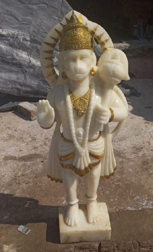 Golden Work Marble Hanuman Statue, Packaging Type : Thermocol Box