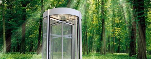 The NRG+ TQ is a revolving door with three or four door wings, available in a variety of diameters and finishes. Instead of a normal manual or automatic drive unit, this revolving door has a special generator that turns the energy applied to turn the door into electricity that can power the low energy ceiling lights. Although the amount of energy that can be generated through the NRG+ TQ is relatively low, as a building’s first impression, it tells visitors that the occupants care about the environment and strive to build a sustainable future.