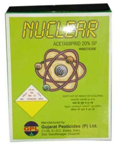 Contact SupplierAt Gujarat Pesticides Pvt. Ltd., we develop better and more powerful insecticides such as Nuclear Insecticide to minimize crop damage. Nuclear Insecticide is used to prevent damage from insects like aphids and whiteflies in cotton. We are a one of the reliable Manufacturers and Suppliers of Nuclear Insecticide in India. The Nuclear Insecticide that we offer is tested on various parameters to be very effective. Composition Acetamiprid a.i. 20% W/W, Related compounds Q.S. Total 100% W/W. Raxa Prid Acetamiprid 20% SP Precautions