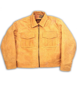 Soft tan Nubuck. Front zipper closure. Comfort collar. Two side front flap pockets. Two side open pockets. Sleeve with adjustable snap closure.