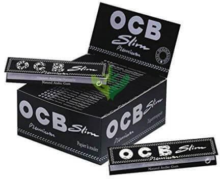 OCB32 leaves per booklet Premium Kingsize SlimOCB Premium Kingsize Slim Papers  The OCB "Premium" range is strong, ultra lightweight, and so thin that it is almost transparent. With holographic lettering on sleek, contemporary black and silver packaging.  High quality rolling papers made from ultra thin, chlorine free paper, each leave is watermarked and has natural gum arabic. Size: 45 x 109 mm Â