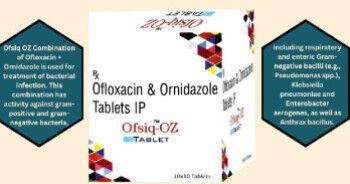 Ofsiq OZ Combination of Ofloxacin + Ornidazole is used for treatment of bacterial infection. This combination has activity against gram-positive and gram-negative bacteria, including respiratory and enteric Gram-negative bacilli (e.g., Pseudomonas spp.), Klebsiella pneumoniae and Enterobacter aerogenes, as well as Anthrax bacillus.