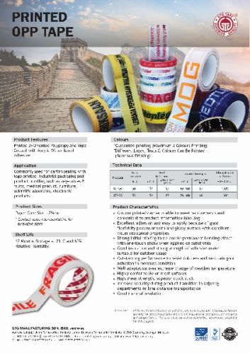 Contact SupplierClear printed OPP Tape is suitable to seal important and or expensive articles in a carton box. The adhesive is stronger than normal OPP Tape and Last Longer for enhanced protection of your parcel@boxes during delivery.