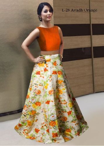 SKU - Avadh Lehenga Fabric: Banglory Satin Silk Blouse: Taffeta Silk Stitch type: Semi Stitched Showroom Finishing Flare : 3.50 Mtr. Wash Care : Hand and Machine Wash