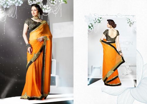 This pretty piece is a fairy tale that begins to unfold as you reveal your beauty in it. Make the heads flip as soon as you costume up in this kind of a wonderful orange faux georgette saree. The appealing gold zardosi|lace|patch work|resham|stones work a considerable feature of this dress.