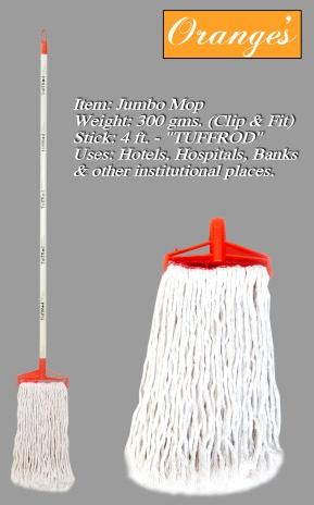 We are offering jumbo clip n fit cleaning mop. type of mop: clip n fit. Weight: 300 grams. (cotton yarn) use: institutional business places like hotels, banks, hospitals, malls, offices etc. Stick: wooden stick – 4 ft. We manufacture and provide strong wooden sticks made from imported hardwood in all our products. These sticks are strong, do not bend or catch rust. Clip: the clip is made from 1st grade (virgin) material.