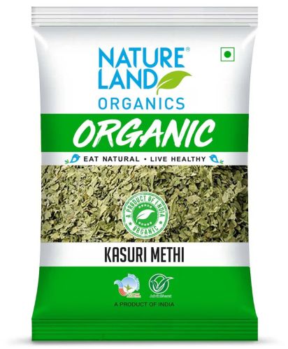 Contact SupplierNatureLand Organics Kasuri Methi is the dried leaves of a fenugreek plant that's used in almost every part of the country. It has a slightly bitter but strong aromatic taste that is widely used in Indian curries. Kasuri methi is used for garnishing after preparation of a dish for giving a rich flavour.