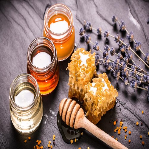 Honey is a sweet, viscous food substance made by honey bees and some other bees. Bees produce honey from the sugary secretions of plants or from secretions of other insects, by regurgitation, enzymatic activity, and water evaporation.