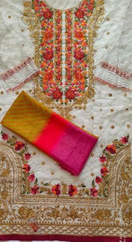 Organza Unstitched Suit, Feature : Breathable, Dry Cleaning, Easy Washable, Eco Friendly, Elegant Design