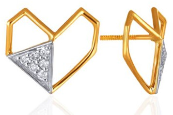 These 0.08 carat diamond earrings, crafted in 14K yellow gold, exude modern sophistication. The cutting-edge heart design, complemented by diamond-studded triangular accents, symbolizes the originality of your relationship. Please note - The dimension of the actual product might vary.