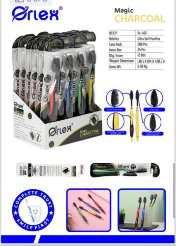 MULTI Plastic Orlex Magic Charcoal Toothbrush For Cleaning Teeths