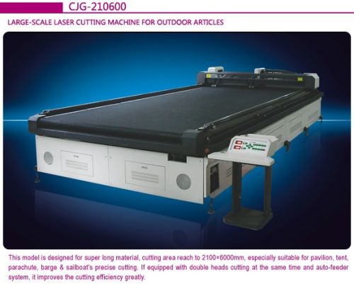 This model is designed for super long material, cutting area reach to 2100×6000mm, especially suitable for pavilion, tent, parachute, barge & sailboat's precise cutting. If equipped with double heads cutting at the same time and auto-feeder system, it improves the cutting efficiency greatly.