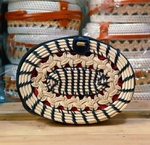 Plain Oval Rattan Handbags, Technics : Machine Made