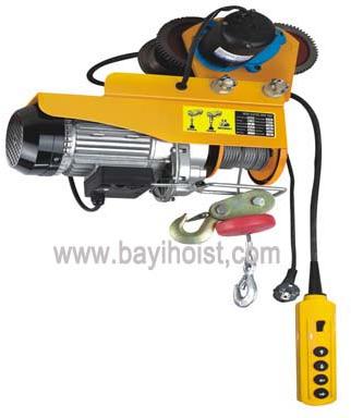 We are offering pa mini electric wire rope hoist. Brief specifications 1. Capacity 200kg-1200kg. 2. Iso9001,ce,gs certification pa mini electric hoist machine description 1. With urgent stop switch 2. With reinforced breaking switch with position 3. Protection class up to ip54 4. With thermal protection device 5. With up limit device 6. Single phase power available.