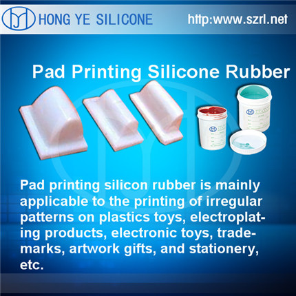 the pad printing silicone rubber is mainly use for printing irregular patterns of plastic toys, electroplating toys, trade makers .silicone pad printing is a carrier which transfer printing the patterns on the steel plate onto the toys products surface.