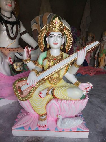2.5 Feet Marble Saraswati Statue, For Worship, Pattern : Painted