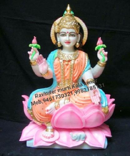 Polished Painted Handmade Marble Laxmi Statue, Color : Multicolors