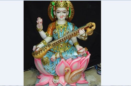 Painted Marble Saraswati Statue, For Worship, Packaging Type : Wooden Carton Box