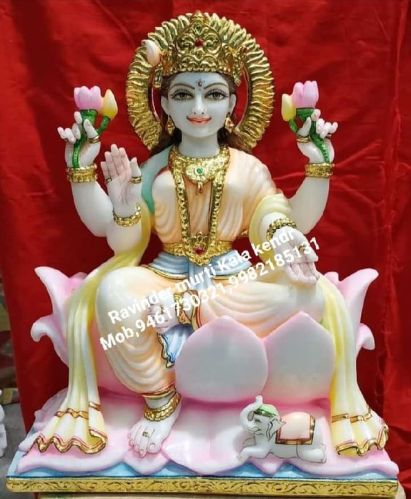 Polished Painted Sitting Marble Laxmi Statue, Color : Multicolors