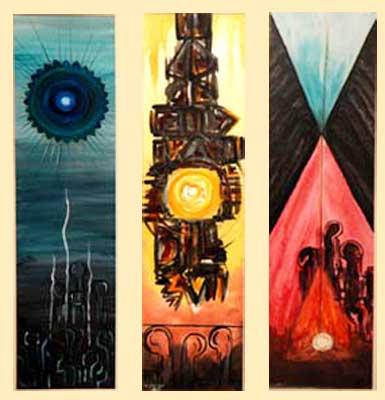 We are Offering Spiritual set of Three Paintings, code No. 414a, 414b, 414c size(without Frame) : 21" X 6"(each) size(with Frame) : 31" X 14"(each) water Color On Paper status : Available