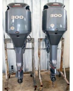 We are offering pair of 2004 yamaha 300 hp 30" outboard motors counter rotating pair of 2004 yamaha 300hp 30 inch high pressure direct injected 2-stroke outboard motors these engines are in very good condition with good even compression. They have been serviced with new thermostats installed. the lower units have been pressure tested and new waterpumps & lube added. The paint is in very good condition. A used rigging kit is available for these motors.