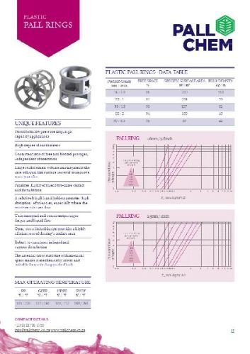 Pimms pall rings are used in mass transfer and to increase surface area during chemical processes pimms pall rings has an internal cross-structure of strengthened diametrical arms making it more mechanically robust than other plastic tower packing which makes it suitable for use in deep packed beds order 25mm 1' 38mm1.5' 50mm 2'.