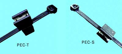 This cable Tie comes along with an Edge-Clip. The metal teeth of the clip strongly bite into the panel (without damaging it), thus providing with a solid grip. No separate tools are required for installation. The Cable Tie can easily slide across the clip, thus adjusting its position as per your need. It is ideal for places where adhesive strips, drilling of holes, or screws cannot be used. Material: Nylon 66. Standard Colour: Black PEC - T :The Cables are routed through the top PEC - S :The Cables are routed through the side