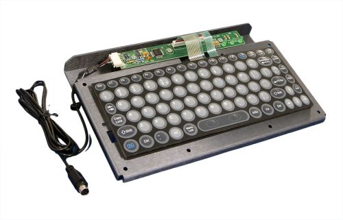 9005R – PANEL MOUNT MINI KEYBOARD, MEMBRANE The 9005 arranges the 9001 on to a metal chassis than can easily be fastened from below the consol. The 9005 can be ordered with moving keys or a flat wipe clean keyboard to suit your application Panel mount mini keyboard with wipe clean membrane Metal chassis Full featured, customizable Low power consumption: 5V from keyboard port Interface: USB, PS2 Embedded numeric pad accessed via num lock also available with moving keys. Width: 273mm (10.75″) height:167mm