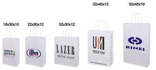 We are offering paper bags with handle and 110 gsm white paper. Raw material: 100% cellulose Made with wood from certified forestry Withstands up to 04 kg It is a paper that biodegrades in a short time