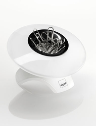 Keep your workspace free from clutter with the simple magnetic paper clip dispenser from the innovative eyestyle® desktop collection designed by Sigel of Germany. This clip dispenser neatly holds up to 100 paper clips with its dark interior magnet, which adds a graphic pop of color to the glossy white exterior. Sigel’s unique, advanced design makes a subtle, contemporary statement to any desk surface. Features: Subtle, angled opening allows for easy storage and accessibility of clips Contemporary white-black contrast design Box includes 50 paper clips