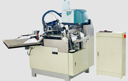 The Paper Cone Forming Machine has a suction nozzle which sucks the printed and cut paper out from the paper shelf and then places the paper onto the conveying chains, which convey the paper further to the forming mould. The paper will be coated during this procedure with Heat Melt Adhesive, whose length and weight can be adjusted without stopping the machine if needed. After formed, the coated paper will become the cones which will be blown into the collecting device, where the cones will be automatically gathered, counted and transferred at a certain intended amount.